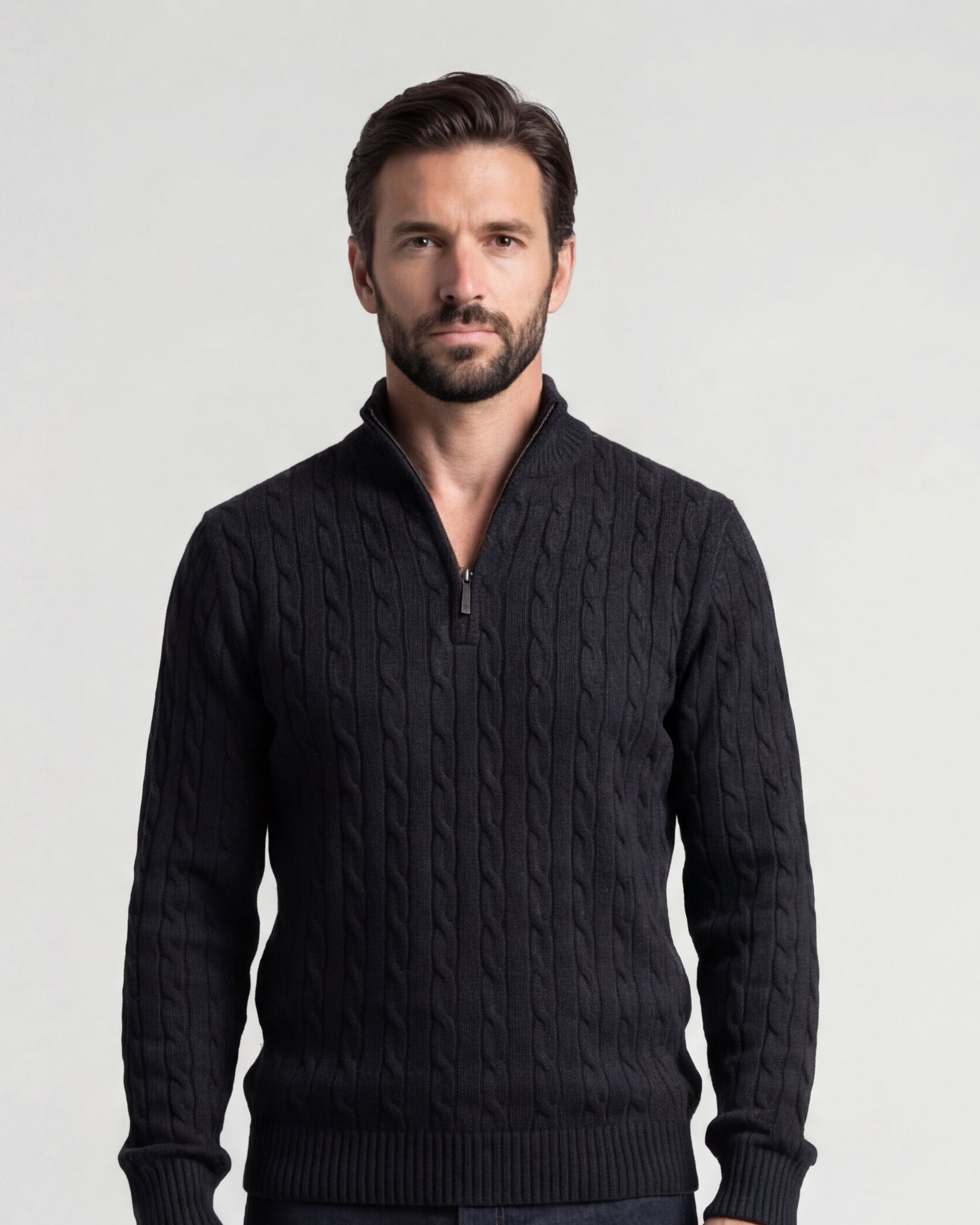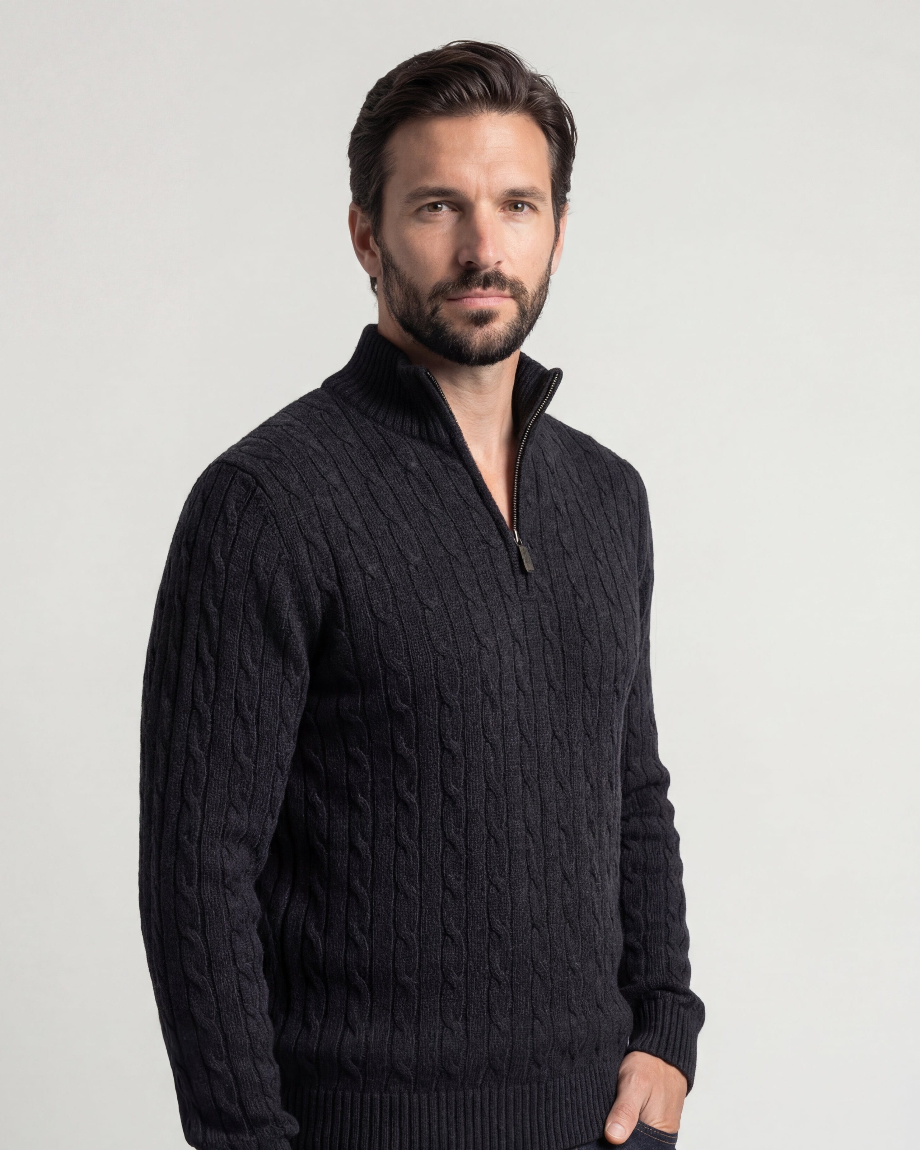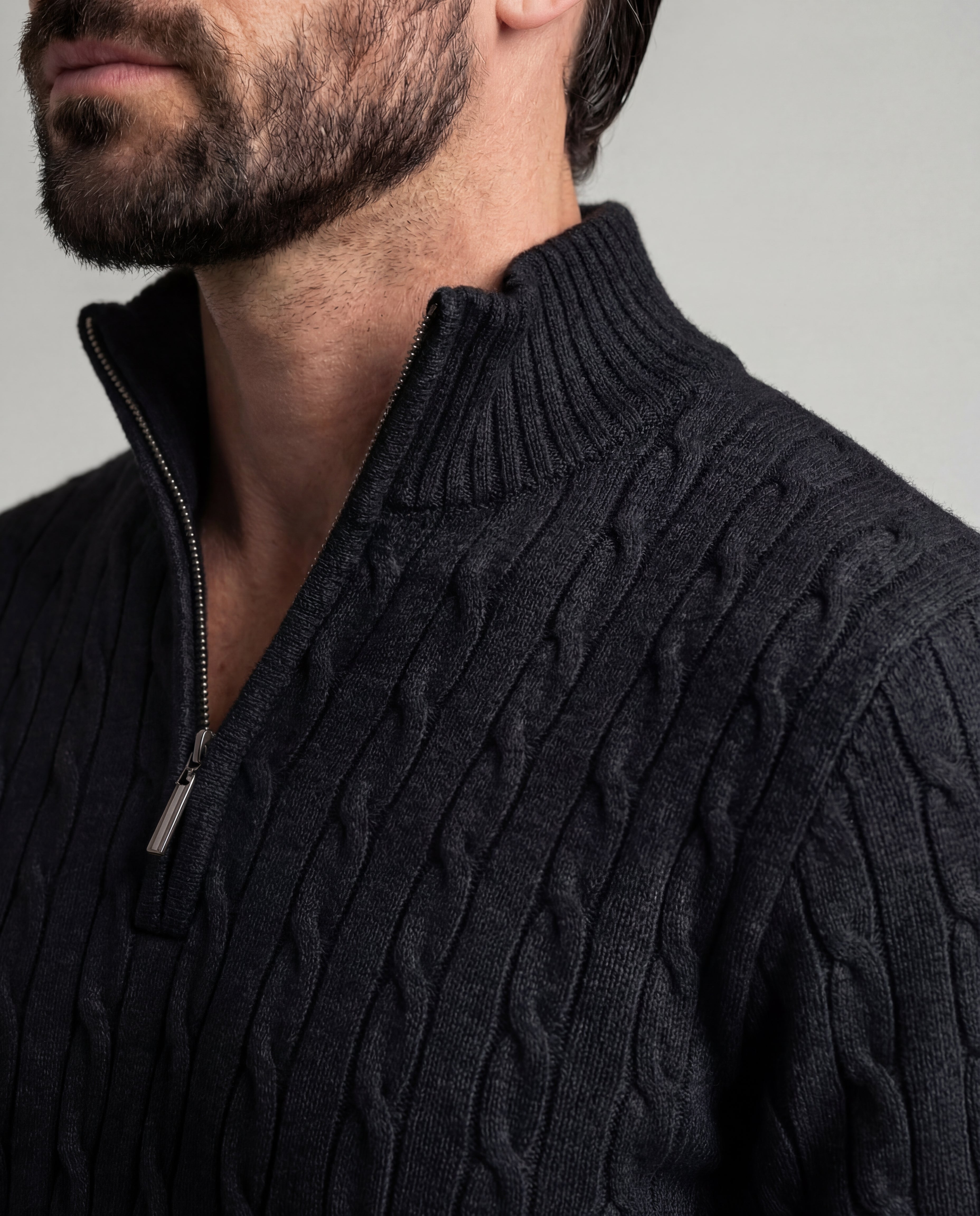 סריג ה Parma בעיצוב איטלקי נקי, עם מרקם עמוק ורך וחצי רוכסן אלגנטי שמייצר לוק מסודר ו־Old Money כבר במבט ראשון. הגזרה האסופה והנפילה המדויקת מעניקות חום, נוחות ונוכחות שקטה של גבר עם טעם.