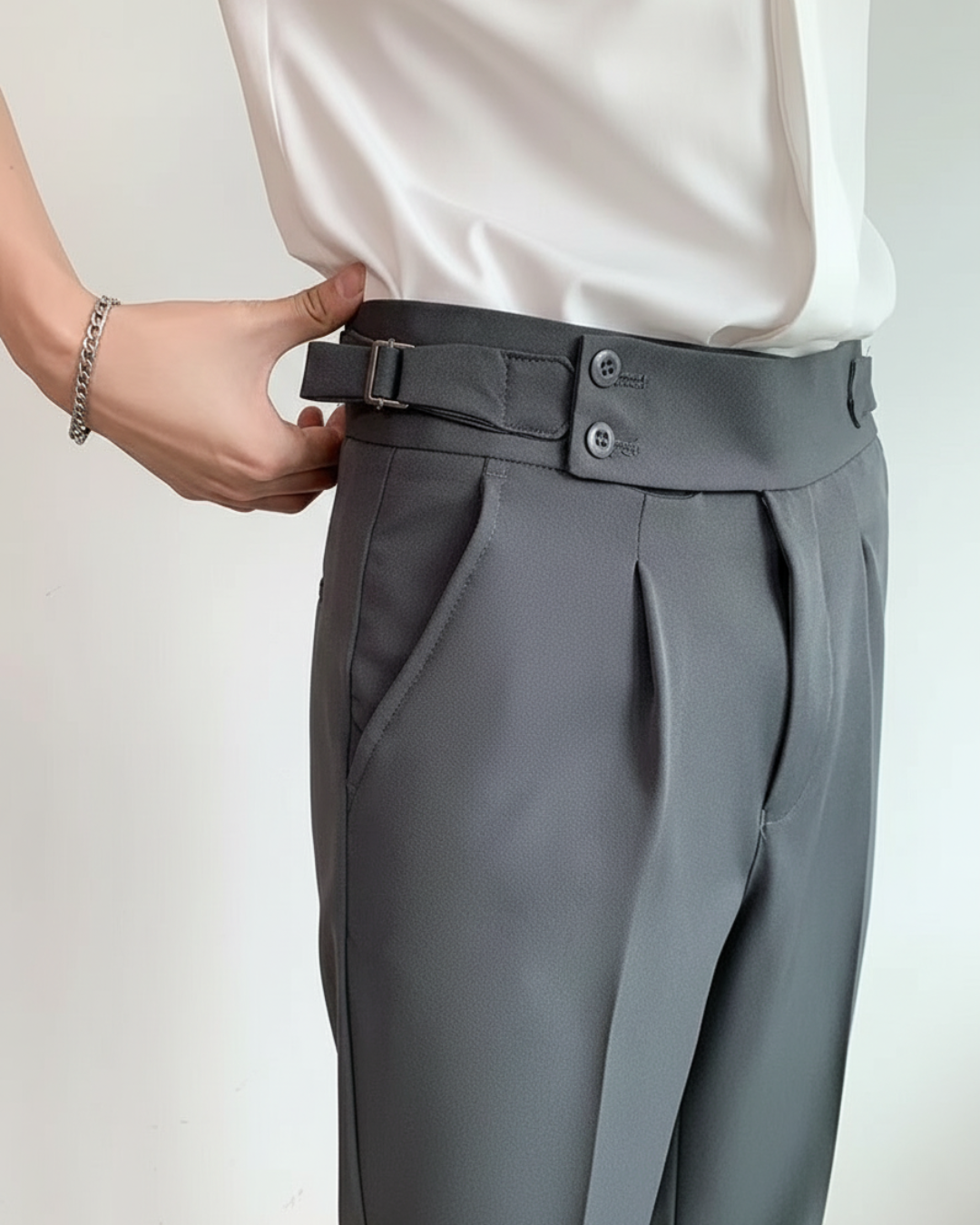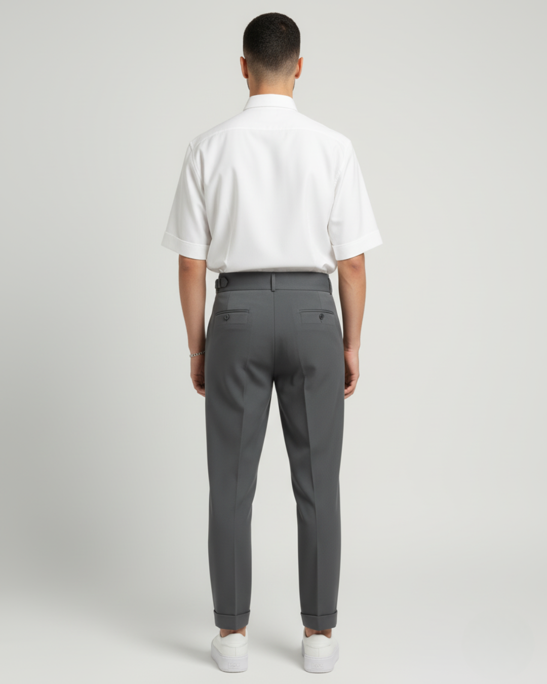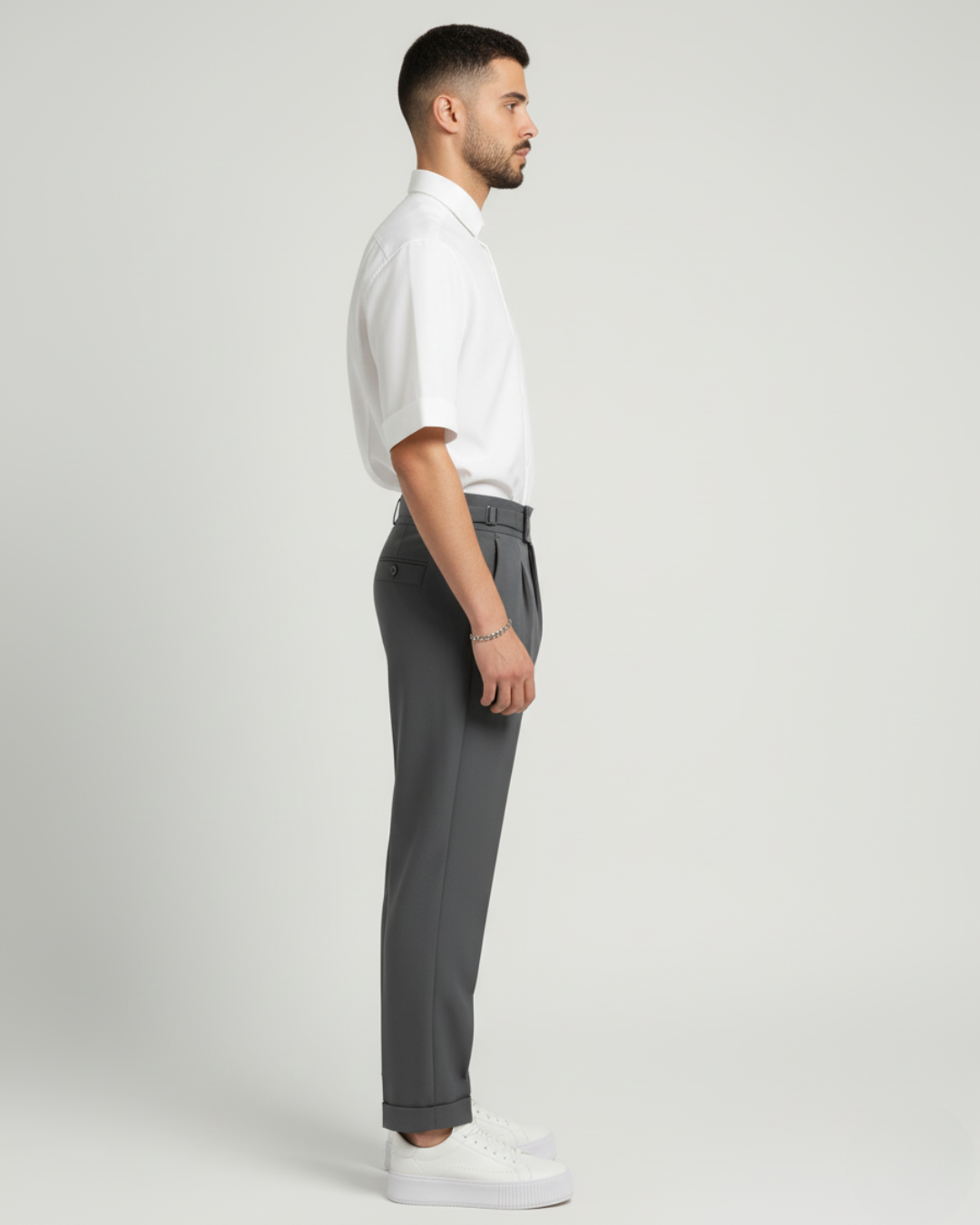מכנסי Bellagio בגזרה גבוהה ונקייה, עם קפלים קדמיים וכפתורים שמייצרים לוק איטלקי מסודר ו־Old Money ללא מאמץ.הבד קל, נעים ובעל אלסטיות עדינה שמעניקה נוחות מושלמת ונפילה חדה שמדגישה את הגזרה.