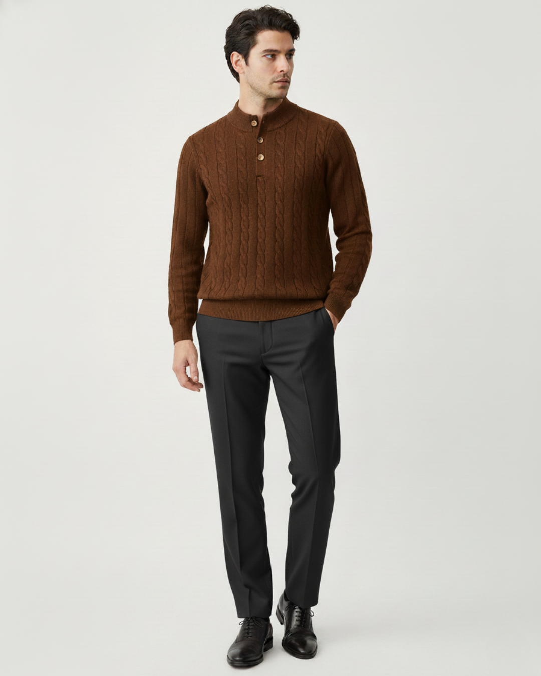 סריג Dolomitiכפתורים מביא אלגנטיות איטלקית טבעית בעיצוב קלאסי ונינוח, עם מרקם צמר רך ונעים שמרגיש פרימיום כבר במבט ראשון. הגזרה המדויקת מעניקה לוק מחויט ורגוע, מושלם לכל עונה, מעל חולצה פשוטה או מתחת לז’קט.